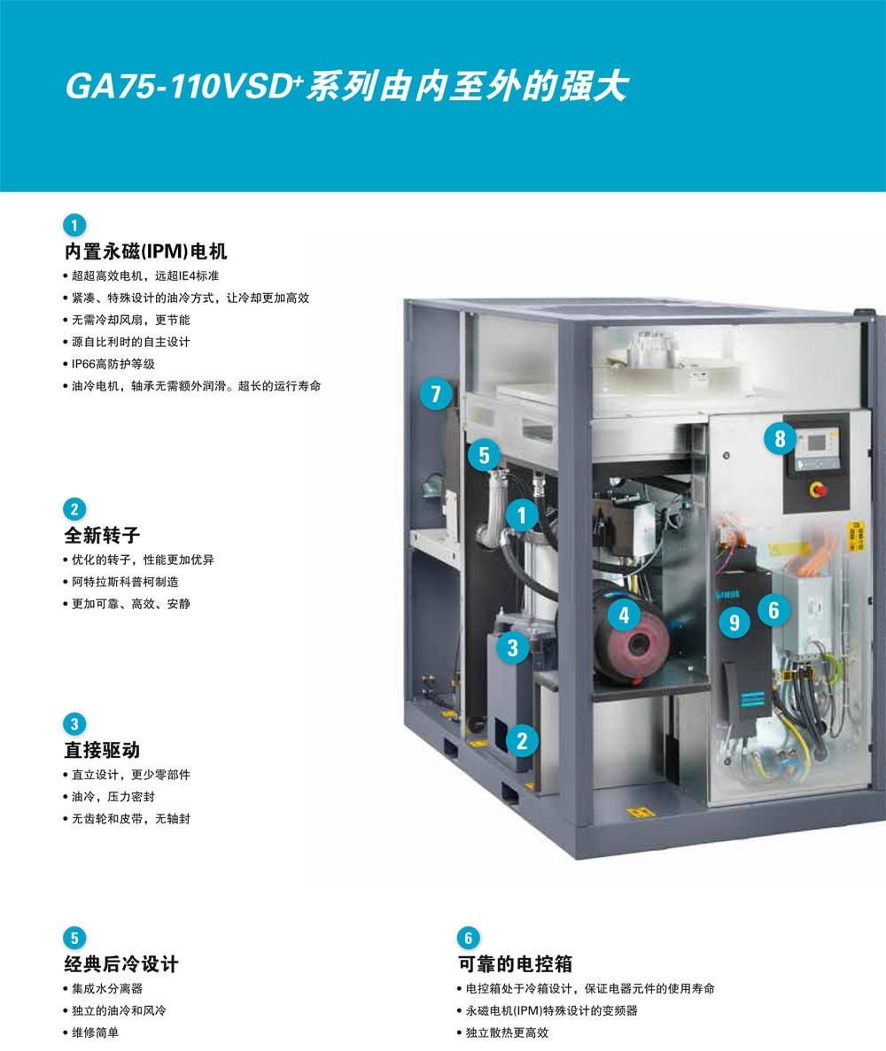 首页产品展示阿特拉斯·科普柯GA7-110VSD 永磁变频空压机